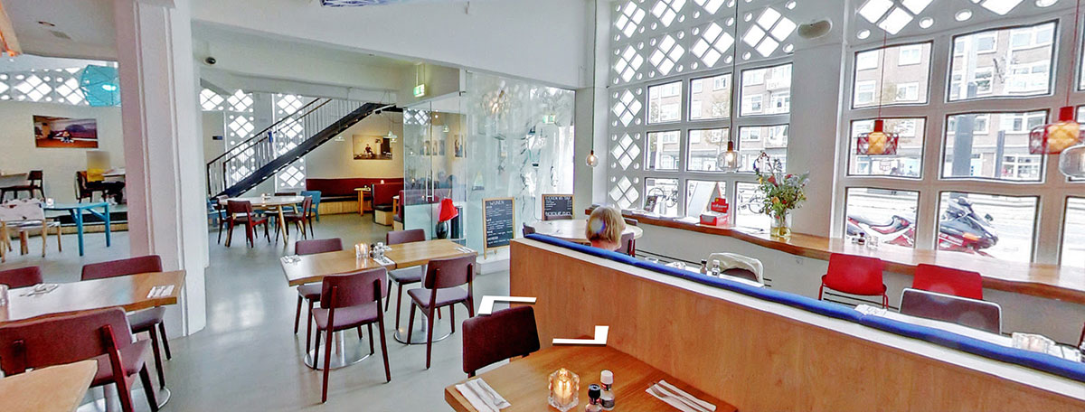 Ons café is een jong interieurmonument passend bij het monumentale pand met toegepaste kunstelementen, de prachtige centrale wand van handgemaakt Iznik keramiek en comfortabele loungehoeken. In ons café en op het gezellige, zonnige terras staan we voor u klaar om u van heerlijke hapjes en drankjes te voorzien.